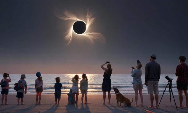 At first, no one on the beach knows why the light looks wrong all of a sudden. The sun is