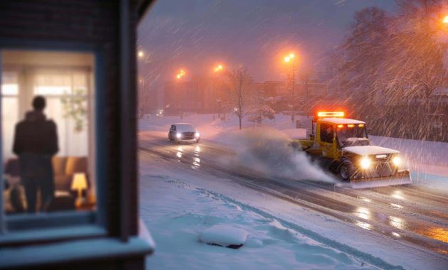 Through the blinds, the streetlights already look blurred, wrapped in a white halo that wasn’t there an hour ago. The