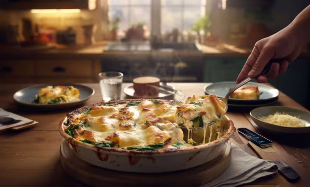 The kitchen was cloaked in a warm, golden glow as the oven light flickered against the bubbly edges of a