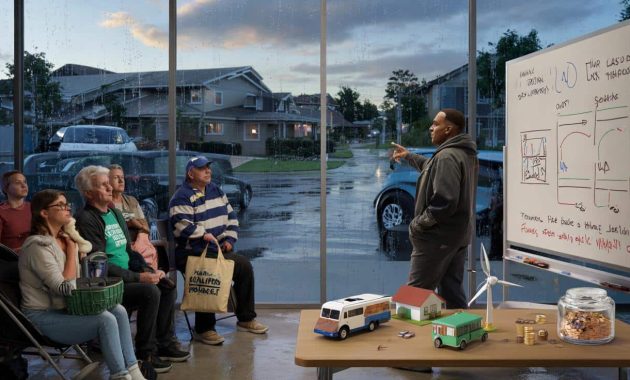On a drizzly Tuesday evening in a suburban community hall, forty plastic chairs scrape against the floor as locals shuffle