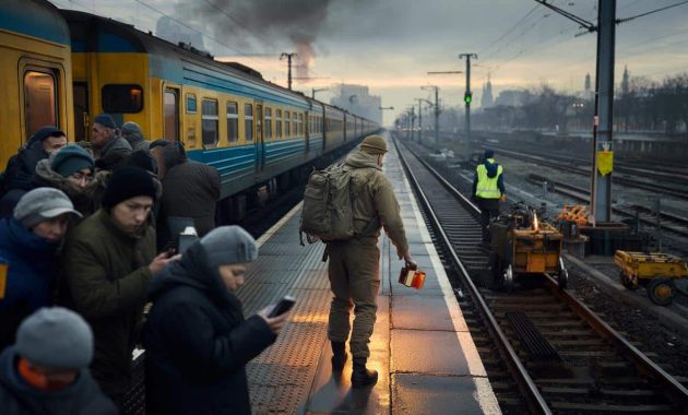 On the platform in Kyiv’s central station, the air smells of metal, wet wool and cheap coffee. A train from
