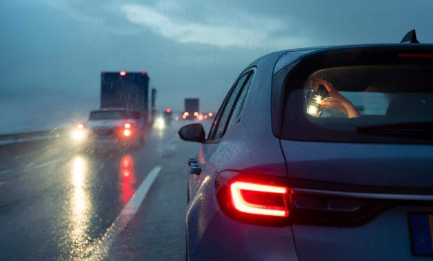 The rain had been hammering the highway for at least twenty minutes when the driver in front of me suddenly