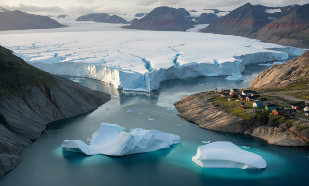 When the pilot dips the wing of the plane, the world below looks almost fake. Greenland looks like a broken