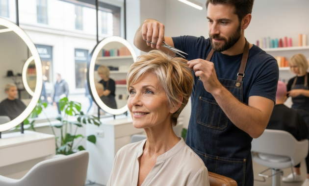 The woman in the salon chair looked both excited and nervous, which was a common mix. She was 62 years