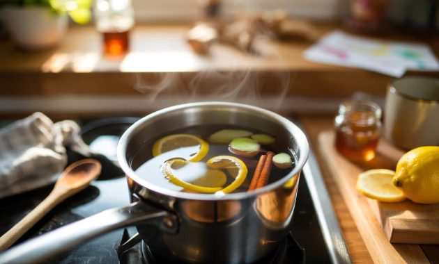 The kitchen smelled like winter and summer at the same time. A small saucepan simmered on the stove, sending up