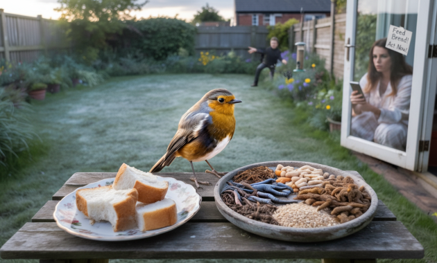 The robin landed a little too close to the kitchen window, head tilted, and waited.A woman in a bathrobe held