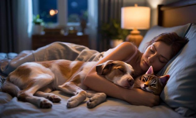 Before settling down in the curve of a person’s legs, a dog goes around them twice. A cat picks its