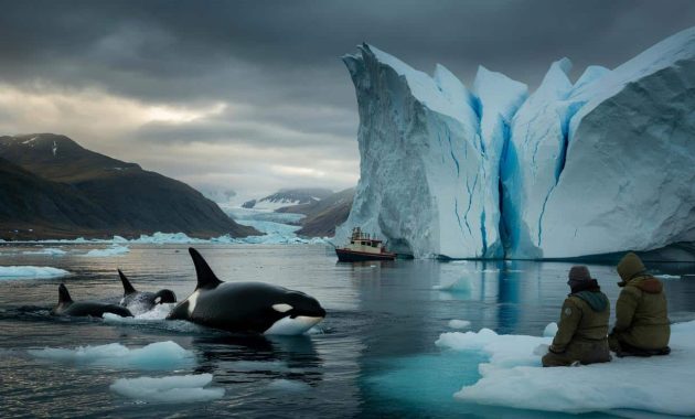 The orca surfaced with a rush of air so loud it cut through the hiss of the wind. A black