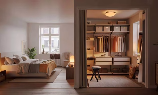 Imagine stepping into your bedroom, where the focal point is not a towering wardrobe, but a sleek, streamlined storage solution