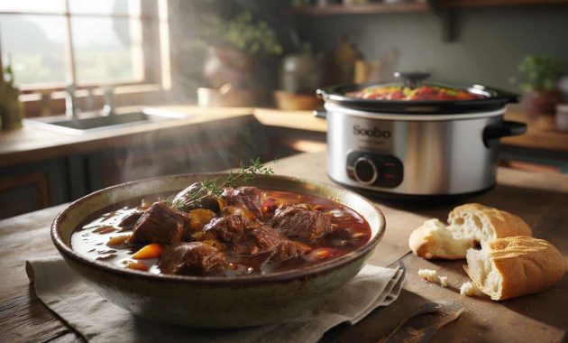 The slow cooker was already humming quietly on the counter when I woke up. Outside, the sky was the color