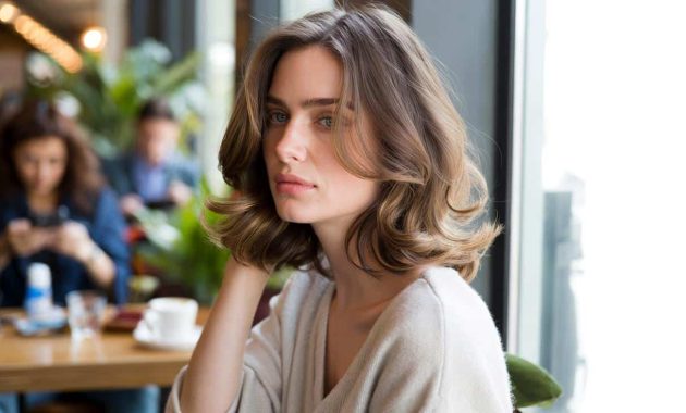The woman in front of me in the café has hair that looks like it just… grew that way. Soft