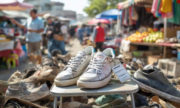 The sneakers had seen better days, but they still looked cool enough to make someone happy. White soles a bit